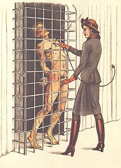 Willenlos drückte er sich gegen die Stäbe. Brutal packte sie ihn beim Hodensack