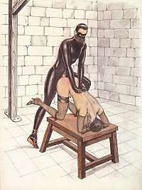 gibt es fünf Hiebe. Rechts ist die Schnalle nicht geschlossen... fünf weitere